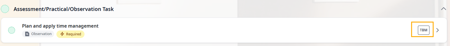 After submission, the assessment moves to To Be Marked (TBM) status and appears in the trainer's marking queue.