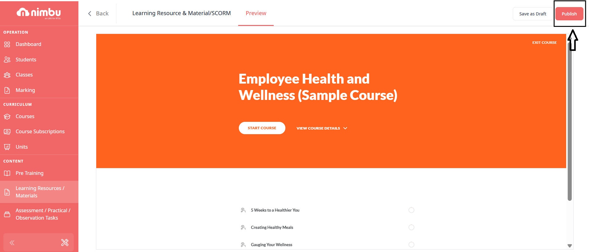 This guide provides a step-by-step walkthrough for uploading and managing SCORM zip packages within Nimbu.