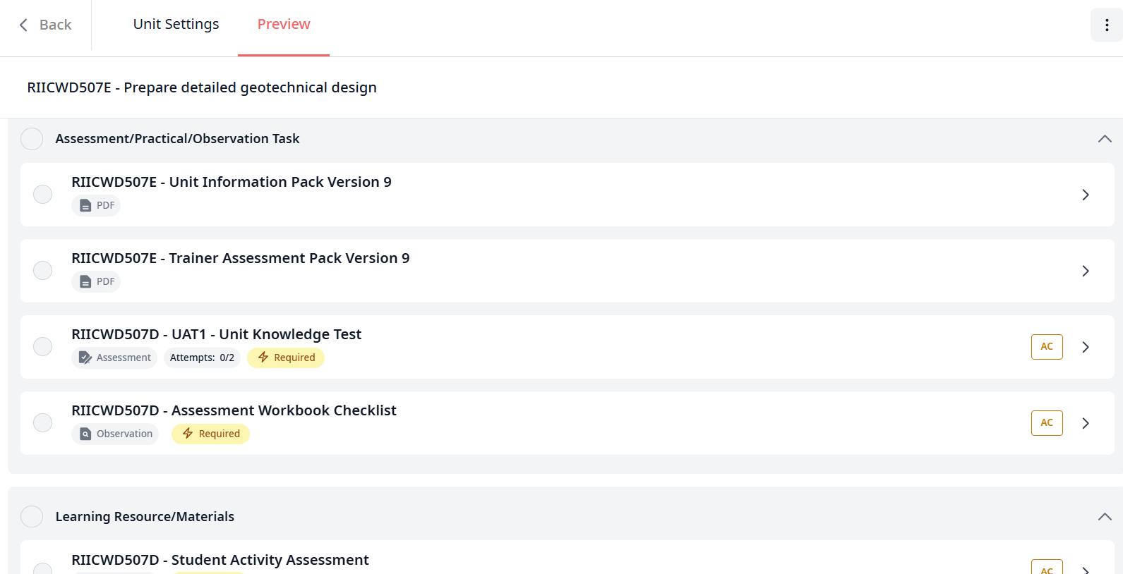 In the Nimbu ecosystem, a Unit is the fundamental container for your educational content. While individual resources and activities are created in the Content Library, the Unit is where these pieces are assembled into a structured learning path. A Unit organises materials into logical sections, allowing you to present learning resources and assessment requirements in the exact order students need them. This structure ensures that your training delivery remains consistent across different classes and trainers.