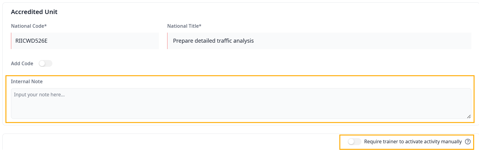 - For Accredited Units: Input the official National Code (e.g., BSBTWK502) and National Title.