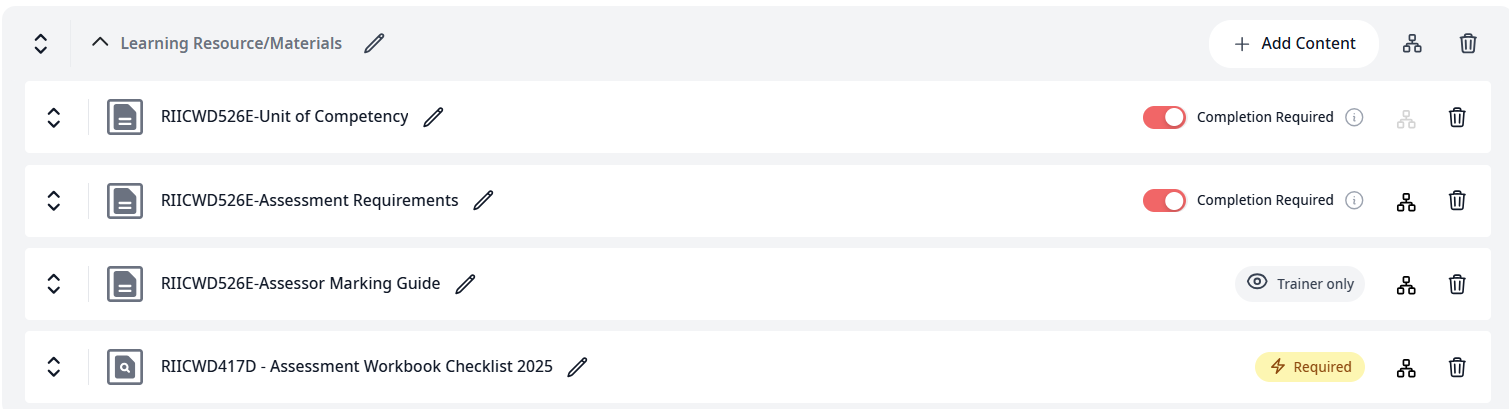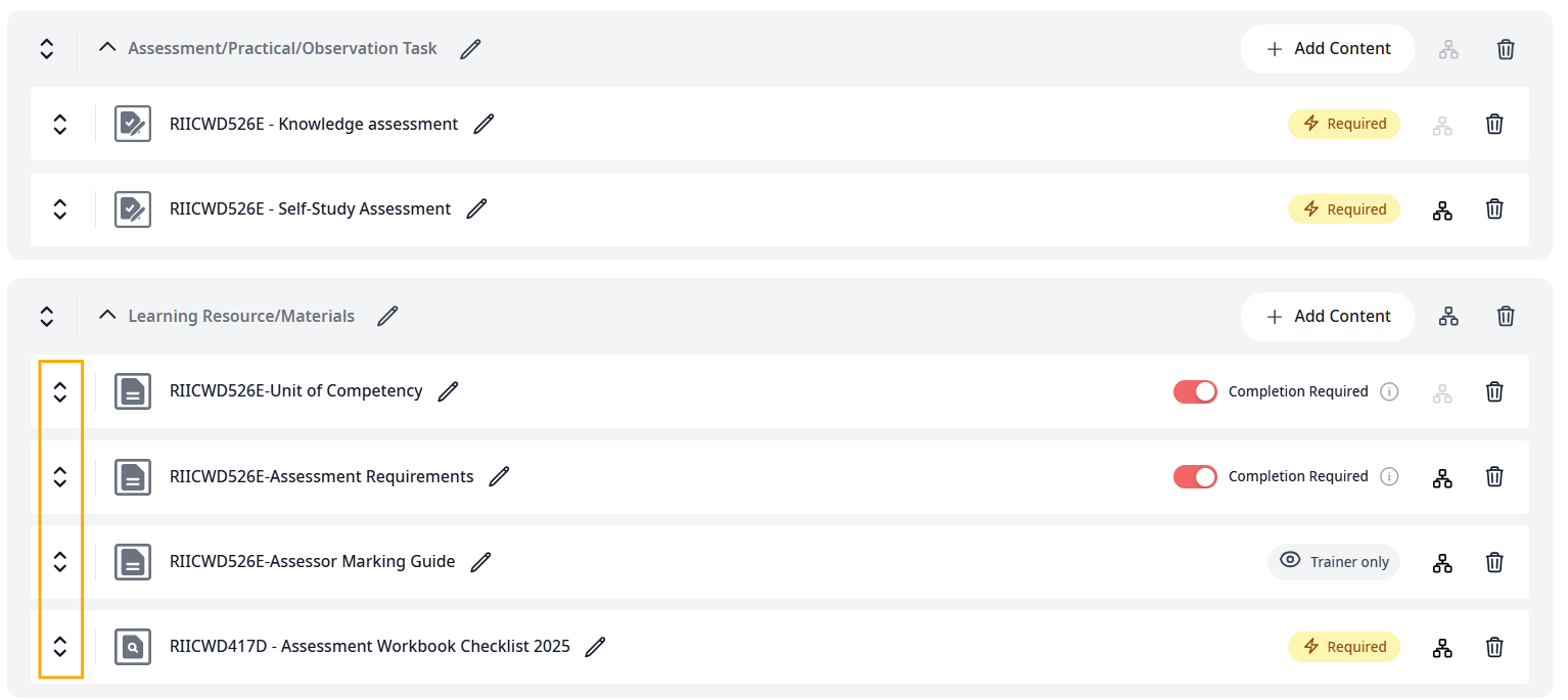 Best practice: Organise sections to match your teaching sequence (e.g., Theory → Practice → Assessment).