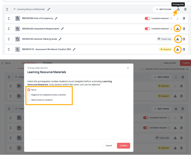 - Trainer Activation Required: Toggle this setting to control when students can access activities within the unit.