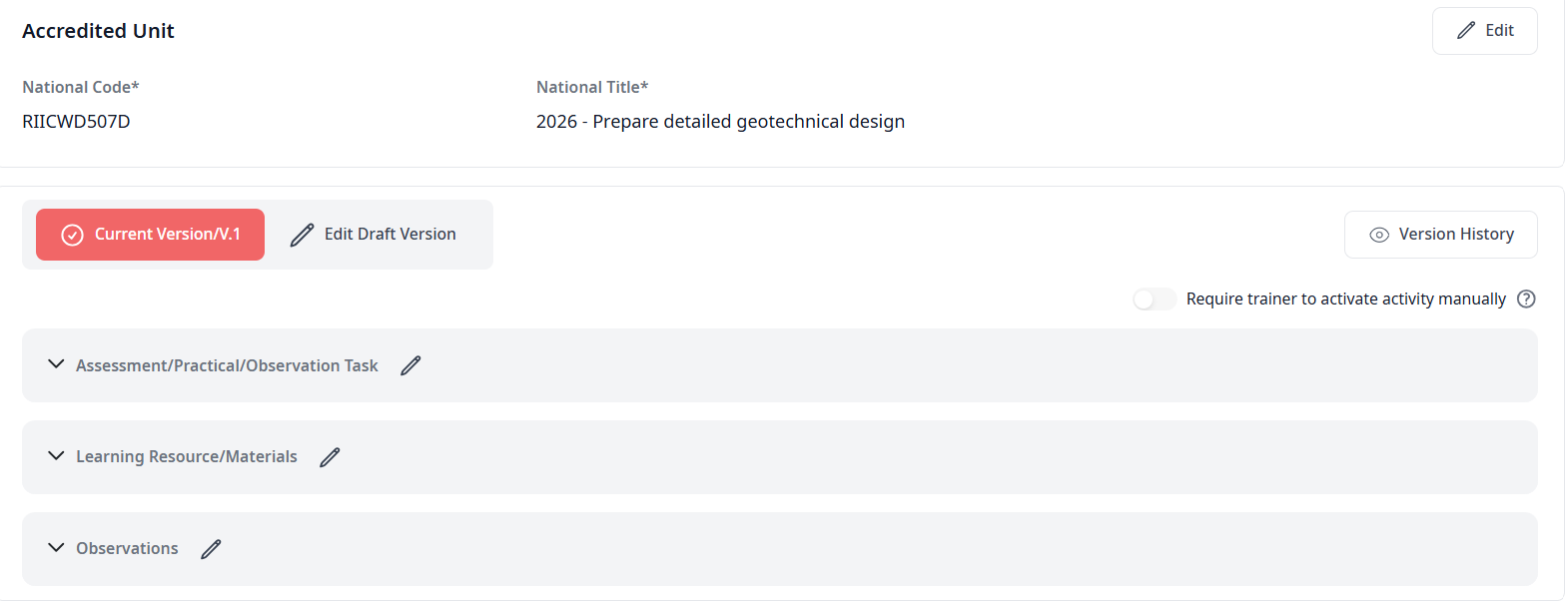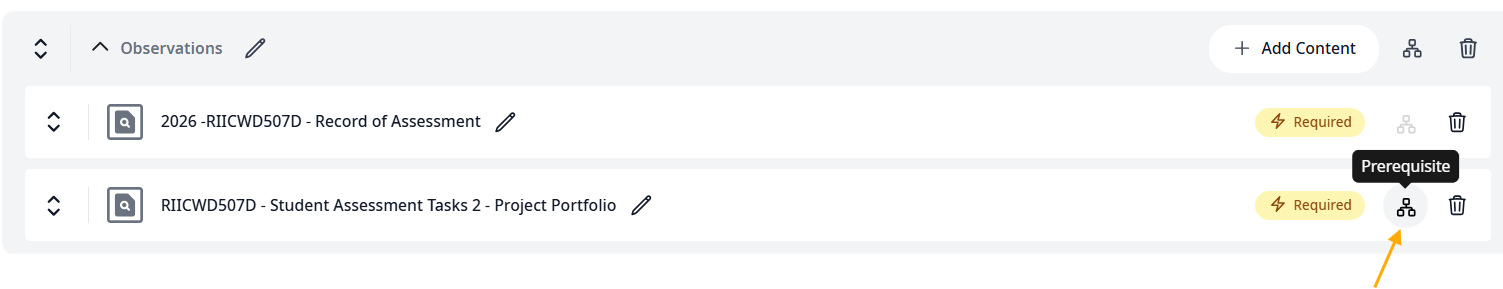 By using sections effectively, you improve student navigation and provide Trainers with a clear visual overview of where specific assessments or resources belong in the curriculum flow.