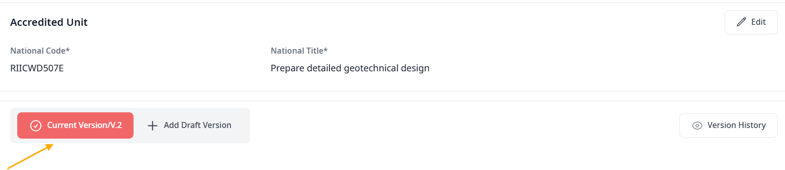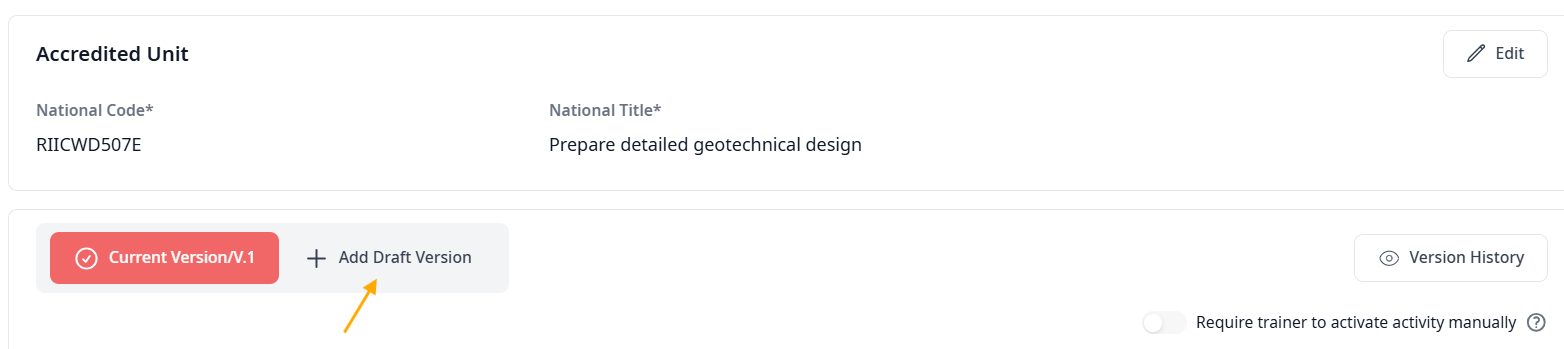 Versioning allows you to work on updates in the background. You can create a "Draft" version of an existing unit, make your improvements, and only push them live when you are ready. This ensures a seamless transition from one version of a training package to the next.