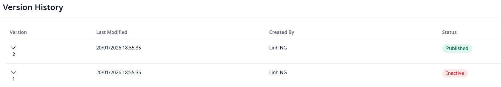 - Inactive Version: An older version that is retained for audit and continuity purposes but is no longer assigned to new classes.