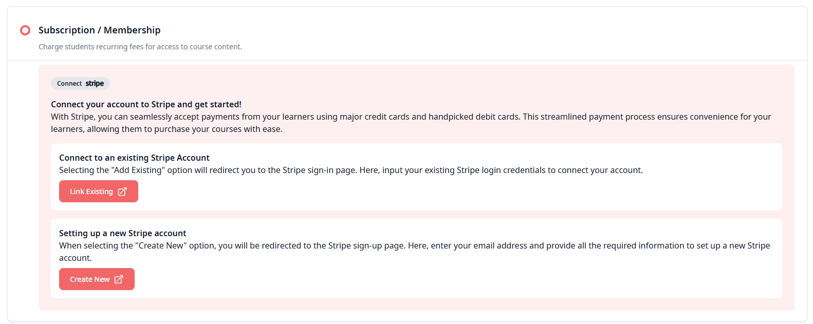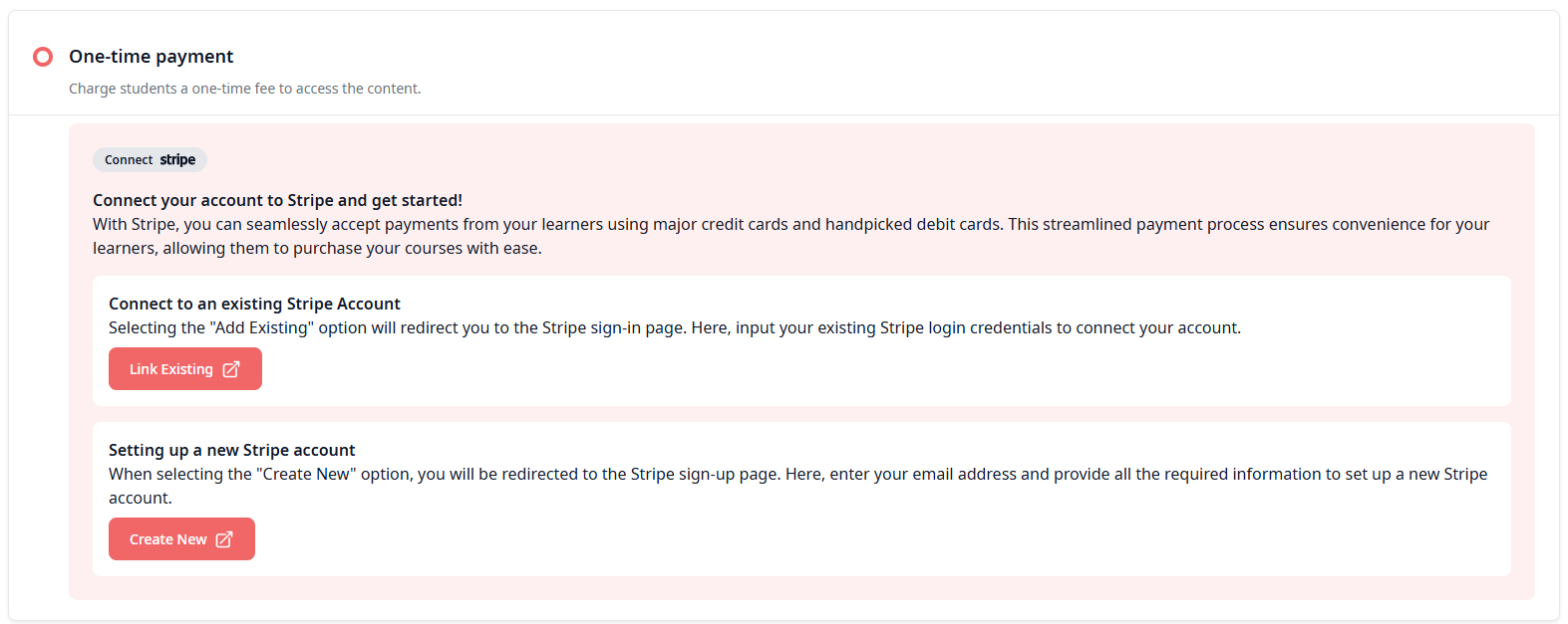 If you have not yet set up your Stripe integration, contact your Admin before configuring paid pricing on any course.