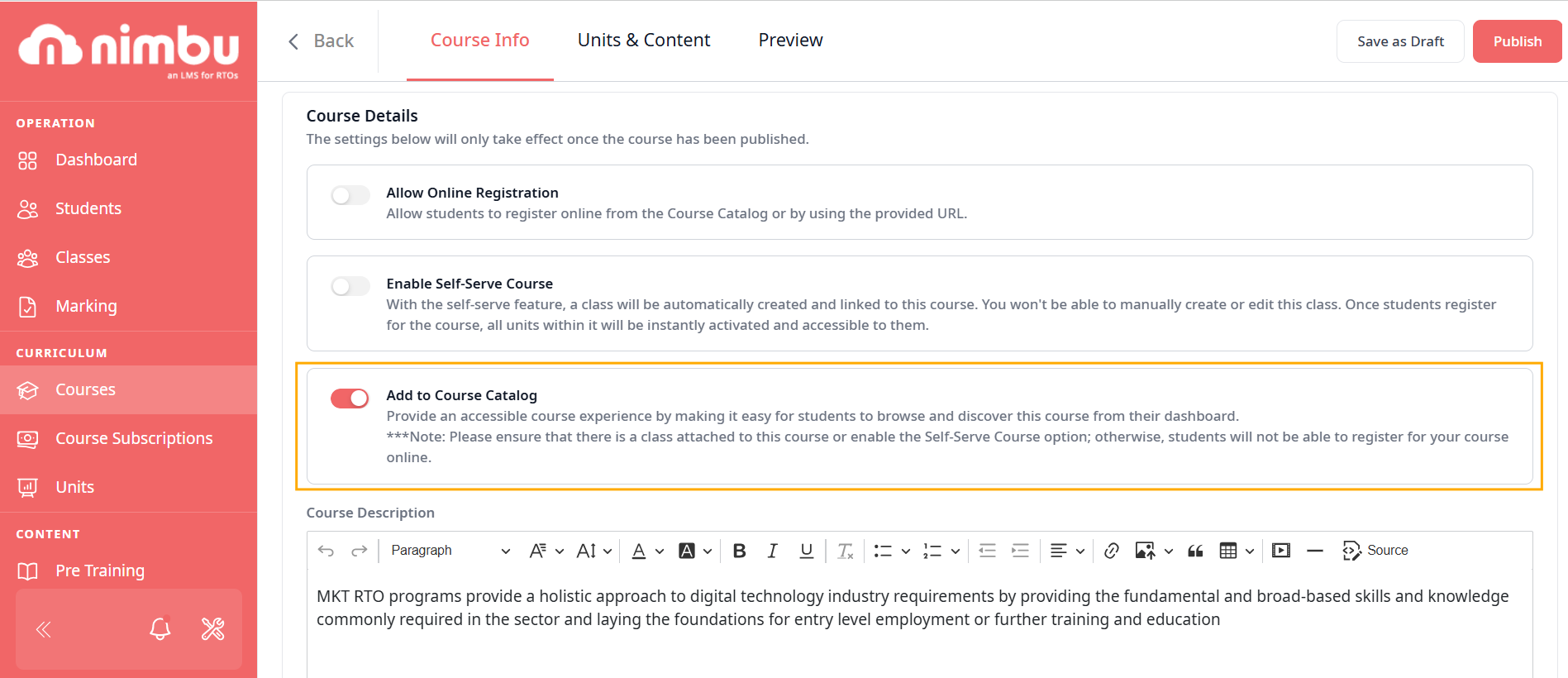 This article details how to manage your course's visibility on the Nimbu Course Catalog.