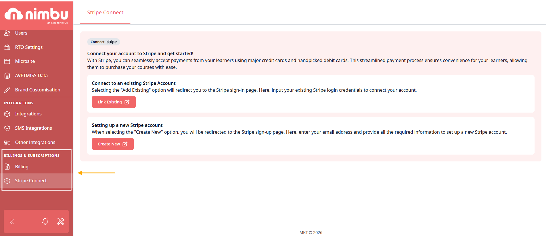 Payment Settings: To manage your Stripe payment gateway, navigate to Billing & Subscriptions -> Stripe Connect.