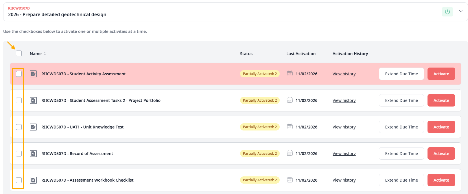 For large cohorts, Batch Activation allows trainers to release content to multiple students simultaneously.