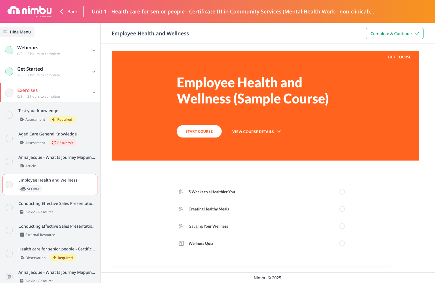 - The SCORM module launches within the Nimbu platform.