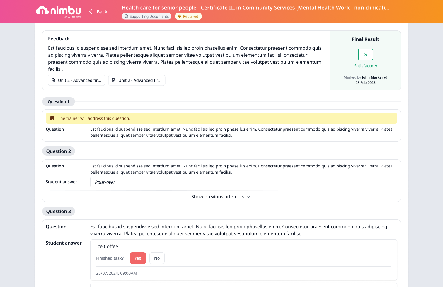 - Trainer-Marked vs Student-Completed Questions: Understanding which parts require your input and which your trainer handles.