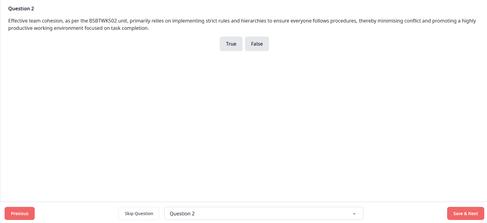 - Read the statement carefully, then click True or False.