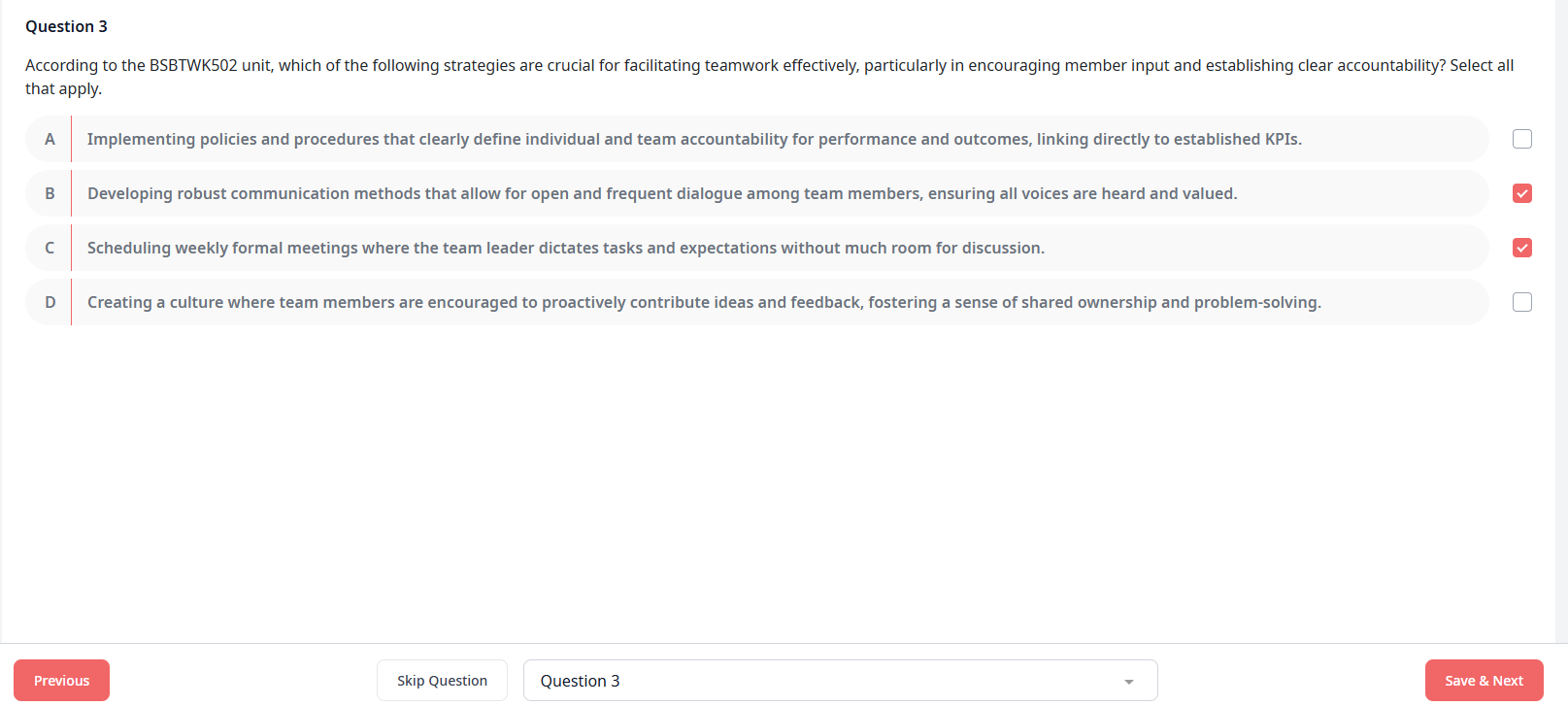 A question where more than one answer may be correct and you must select all that apply.