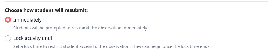 Trainers choose when the resubmission becomes available to the student. Three options are available: