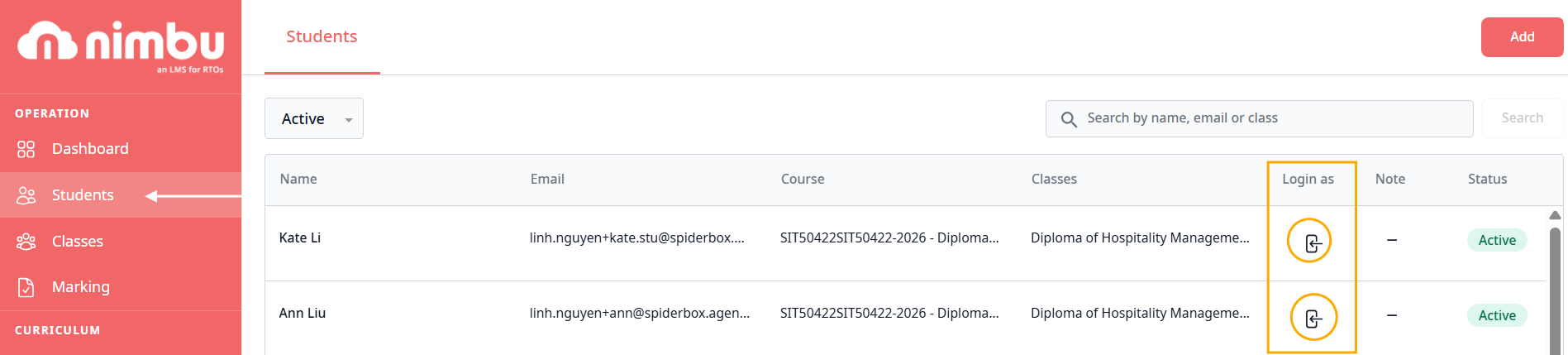 Impersonation allows authorised administrators to log in and navigate Nimbu exactly as a specific student would see it - using the same interface, the same content, and the same access level as that student's account. This is a support tool, intended for diagnosing access issues, verifying the student experience, and assisting students who are unable to troubleshoot their own account.