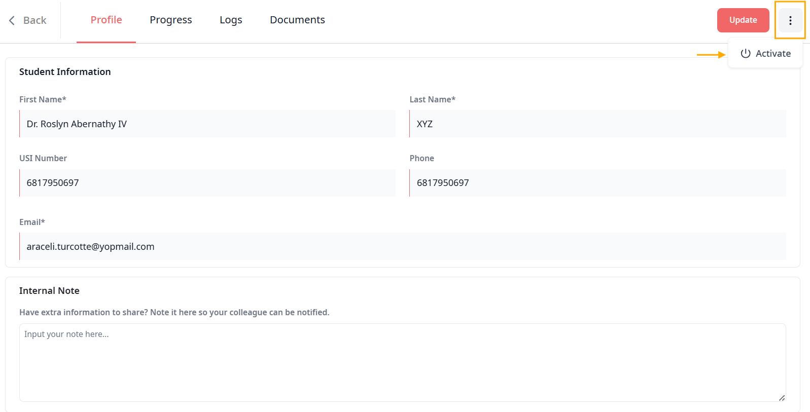 - Re-activating a Student: Restoring access to a previously deactivated account.