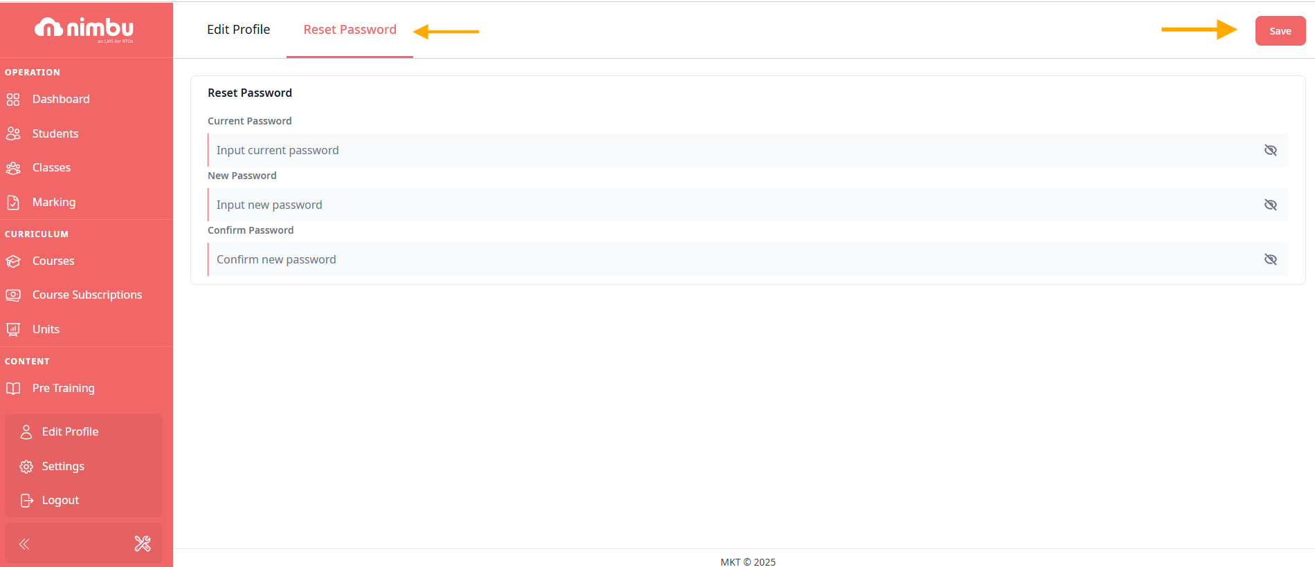 Step 4 - Click into Reset Password tab then input your current and new password. Then click the Save button in the top right corner of the page to save the changes you made.