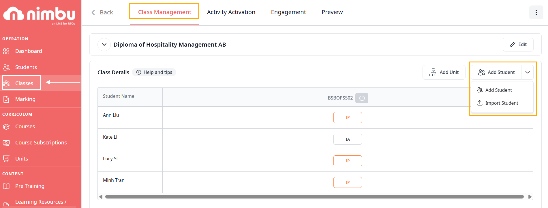 - Select Add Student from the dropdown options.